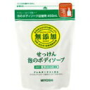無添加せっけん 泡のボディソープ 詰替450ml 価格: 378円 レビュー評価: 4.81 レビュー数:300 商品説明「無添加せっけん 泡のボディソープ 詰替450ml」は、泡で出るので泡立ての手間がかからない、便利な無添加ボディシャンプー「無添加せっけん 泡のボディソープ ポンプ500ml」の詰替用です。泡立てが苦手な小さなお子様でも、簡単にお使い頂けます。更にやわらかな泡は、お肌への摩擦をやわらげます。ヌルヌルせずにすすぎも楽で、すっきりした洗い心地。敏感肌の方でも、お年寄りの方でもお使い頂けます。香料、着色料、防腐剤無添加。アレルギーテスト済み(全ての方にアレルギーが起こらないという事ではありません)。全成分水、カリ石ケン素地ご注意●お肌に傷、はれもの、湿疹等異常のある時は使用しないで下さい。● Supported by 楽天ウェブサービス |